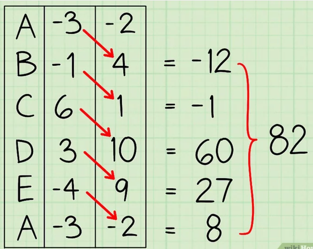 이번에는 반대로 앞 꼭짓점의 y좌표와 뒷꼭짓점의 x좌표를 곱한 값을 모두 더한다.