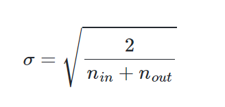 정규 분포로 초기화할 경우에는 표준편차가 다음을 만족하도록 한다.