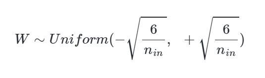 He 초기화는 균등 분포로 초기화할 경우, 다음과 같은 균등 분포 범위를 가지도록 한다.
