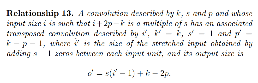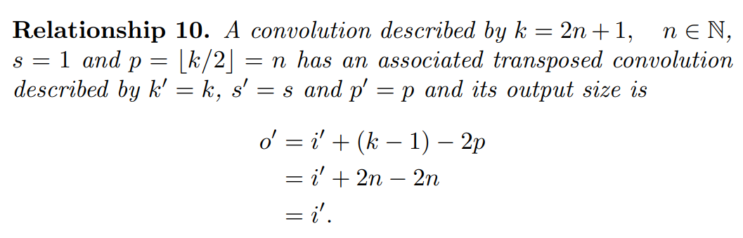 * o는 출력의 크기, i는 input feature의 크기, k는 커널의 크기.