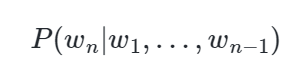 다음 단어 등장 확률을 식으로 표현한다. n-1개의 단어가 나열된 상태에서 n번째 단어의 확률은 다음과 같다.
