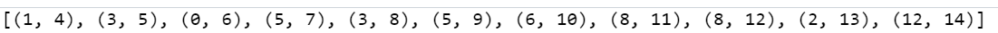 회의를 정렬한 뒤, 첫 회의부터 하나씩 돌아가면서 조건을 따지기 시작한다. 처음에 end_time을 0으로 설정하고, 시작 시간이 이보다 늦는 회의가 있으면 그 회의를 선택하여 추가한다. 즉 현재 회의가 끝난 시간과 다음 회의가 시작하는 시간이 같거나 크면 다음 회의를 추가하는 것이다.