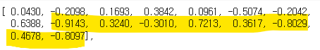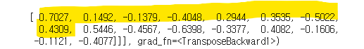 반대로 역방향 마지막 은닉 상태들은 outputs의 첫 번째 시점에서 나온 값의 뒷부분에 해당한다.