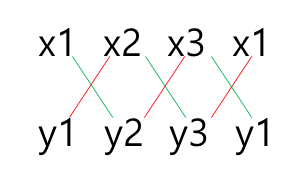 3) x3, y3 - x4, y4 에 대해 x1, y1과 x2, y2가 모두 시계 방향에 있을 때