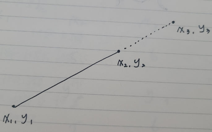 1) x1, y1 - x2, y2 위에 x3, y3 가 있을 때