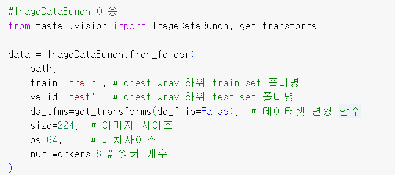 fastai 버전 1.x에서 훈련 및 검증용 이미지 데이터를 생성하고 관리하기 위한 클래스