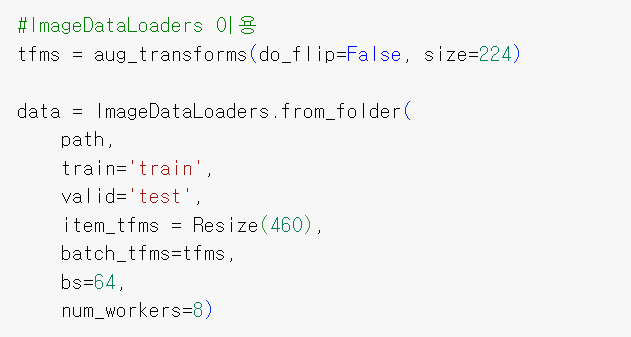fastai 버전 2.x의 출범과 함께 ImageDataBunch는 ImageDataLoaders로 대체됨. DataLoaders는 더 유연하고 조합 가능한 방식으로 데이터로더를 구성함.