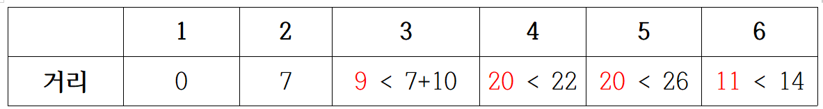 # 원래의 거리보다 새로운 거리가 더 길면 갱신하지 않는다.
