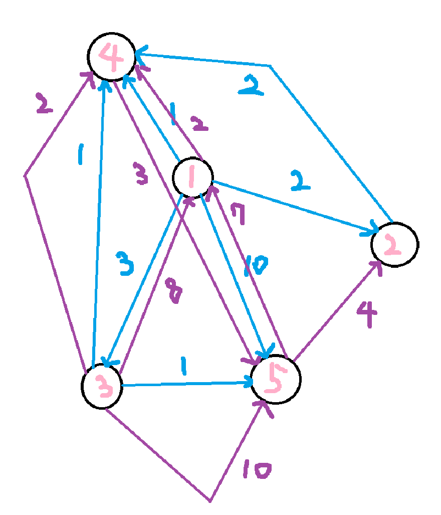 graph[a][b] = min(graph[a][b], c) #한 노드에서 다른 노드로 가는 경로가 여러 개임. 최소값으로 설정한다.