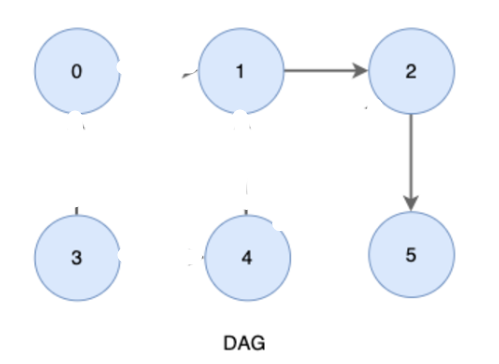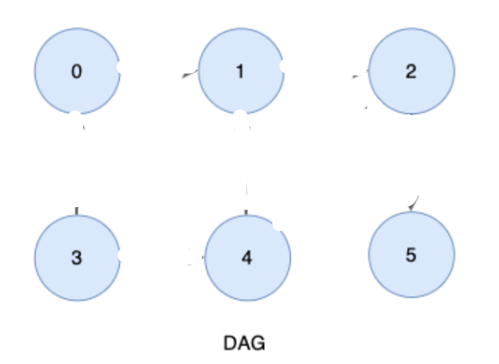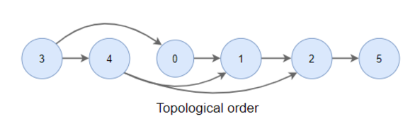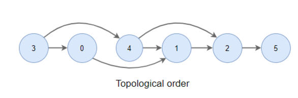 위의 DAG에서 노드들을 방향성에 거스르지 않는 순서대로 나열하면 아래와 같다. (위상정렬 결과)