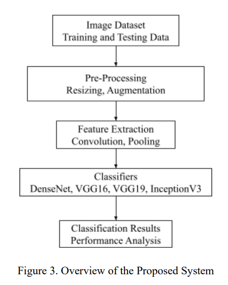 제안된 모델의 주요 목표는 주어진 데이터셋에서 패턴을 학습하는 것임. 이를 통해 모델은 새로운 이미지를 올바른 클래스로 정확히 분류할 수 있게 됨. 이를 위해서는 분류와 관련된 모델 손실을 최소화해야 함. 이는 옵티마이저를 사용하여 제어됨. 옵티마이저는 가중치와 학습률과 같은 신경망 특성을 변경하여 손실을 최소화하기 위해 사용되는 알고리즘 또는 방법을 의미함. 다양한 종류의 옵티마이저가 있으며, 그 중에는 경사 하강법(Gradient Descent), 모멘텀(Momentum), 아다그라드(Adagrad), RMSProp 등이 있음. 이 논문에서는 Adam 옵티마이저가 사용됨.