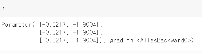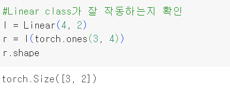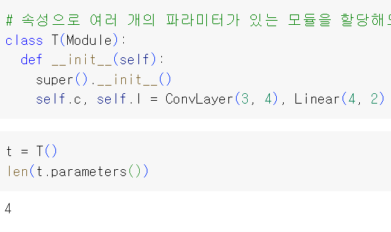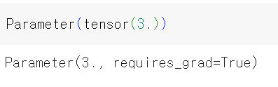 1. Parameter 클래스는 Tensor 클래스를 상속받아 'Tensor'의 기능을 포함하며 파라미터로 사용함