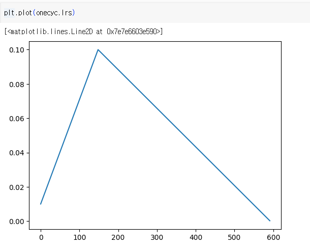 훈련 중 첫 25% 동안(pct_start=0.25라고 정의된 부분) 학습률은 base_lr의 일부에서 전체 base_lr까지 선형으로 증가함.