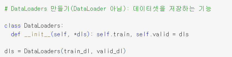 위에서 만든 DataLoader를 저장하는 DataLoaders 모듈