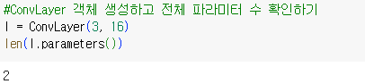 변환된 입력 텐서 xbt를 합성곱 layer l에 통과시킴(입력채널이 3, 출력채널이 16인 합성곱 layer).