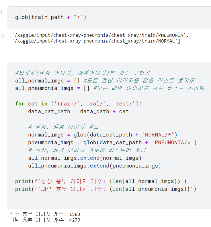 NORMAL 디렉토리에 담긴 이미지의 타깃값은 0, PNEUMONIA 디렉토리에 담긴 이미지의 타깃값은 1로 간주함.