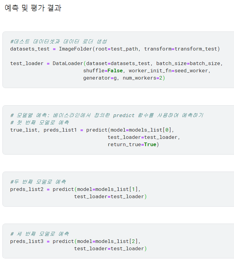 * 훈련을 마친 세 모델로 각각 예측하고, 이어서 세 모델의 예측 결과를 앙상블하기. 앙상블 예측값과 실젯값을 비교해서 최종 평가 점수 산출