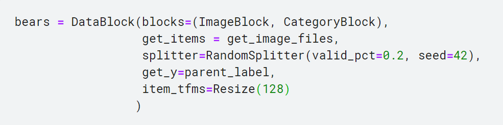 - item_tfms=Resize(128)