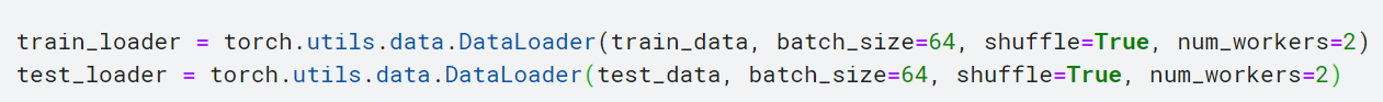 train_loader = torch.utils.data.DataLoader(train_data, batch_size=64, shuffle=True, num_workers=2)